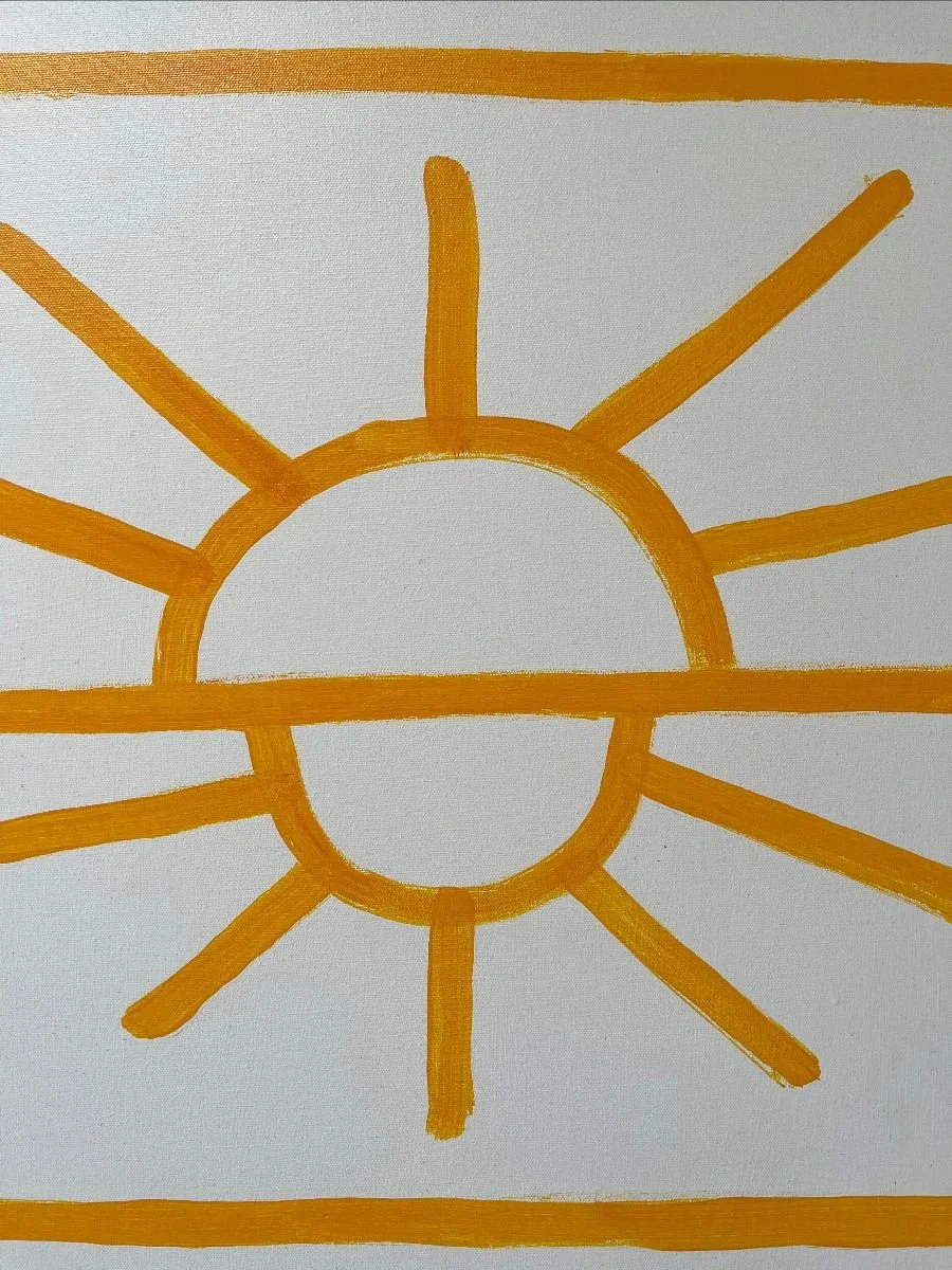 The “midnight sun,” a phenomenon in which daylight refuses to recede, functions here less as a metaphor for abundance than as a condition of suspension. Rest, closure, and shadow are indefinitely deferred. Across the works, solar forms are positioned asymmetrically, oriented toward the visual left, upper left, center, and lower right, and so on, each skewed within its own horizon.